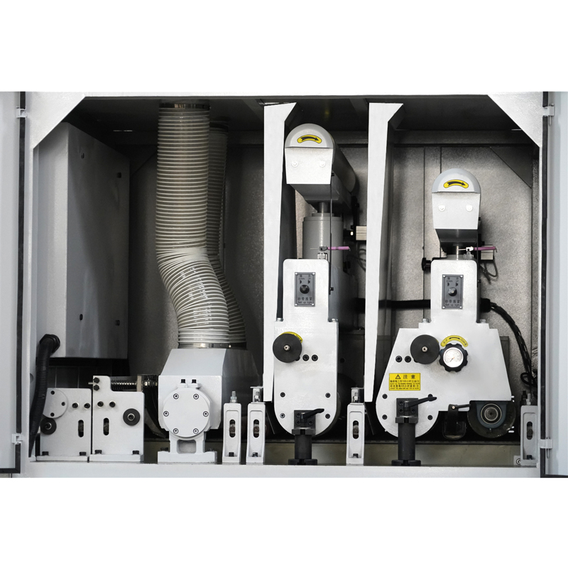 性能特點:本機床是一臺將刨削和砂光完美結(jié)合在一起的組合刨砂機,是由刨刀輥和輥式砂架、壓磨式砂架、組合在一起,進行先刨后砂具有切削量大、加工精度高和砂帶磨損低等特點。螺旋刨刀輥裝有可轉(zhuǎn)位四面刃不重磨超硬刀片。 主要適用于實木板、實木拼板的刨砂加工,也可以用于細(xì)木工板刨花板、中密度纖維板、指接板、復(fù)合材料等各種板材的厚度刨削和精細(xì)砂光。